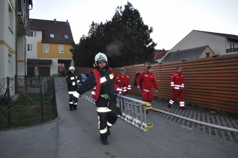 Drei verletzte Personen befanden sich bereits im Freien und wurden umgehend von 2 Rettungstransportwagen und 6 First Respondern des Roten Kreuzes Gänserndorf sowie von 4 anwesenden Ärzten versorgt und anschließend in das Krankenhaus Mistelbach verbracht. Zwei weitere Personen der angrenzenden Nebenwohnung im 1. Stock haben sich aufgrund der Rauchentwicklung auf den Balkon geflüchtet und wurden mittels Leiter in Sicherheit gebracht.