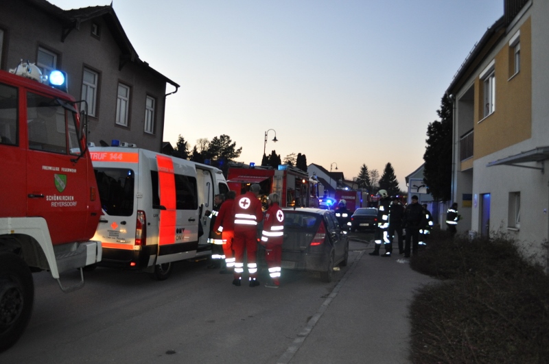 Am 25.01.2014 kam es aus unbekannter Ursache in einer Wohnung im ersten Stock eines Mehrparteienhauses auf der Hauptstraße in Schönkirchen-Reyersdorf zu einem Brand. Um 16:28 Uhr erfolgte die Alarmierung der Feuerwehren Schönkirchen-Reyersdorf, Auersthal, Prottes und Gänserndorf. Da sich Kameraden im Feuerwehrhaus befanden, rückte bereits 2 Minuten (!) nach der Alarmierung das Rüstlöschfahrzeug zum Einsatzort aus und konnte sofort nach der Erkundung mit dem Löscheinsatz unter schwerem Atemschutz beginnen. Das Schlafzimmer stand in Vollbrand und konnte nach wenigen Minuten durch den ersten Atemschutztrupp unter extremer Hitze mittels C-Strahlrohr gelöscht werden.