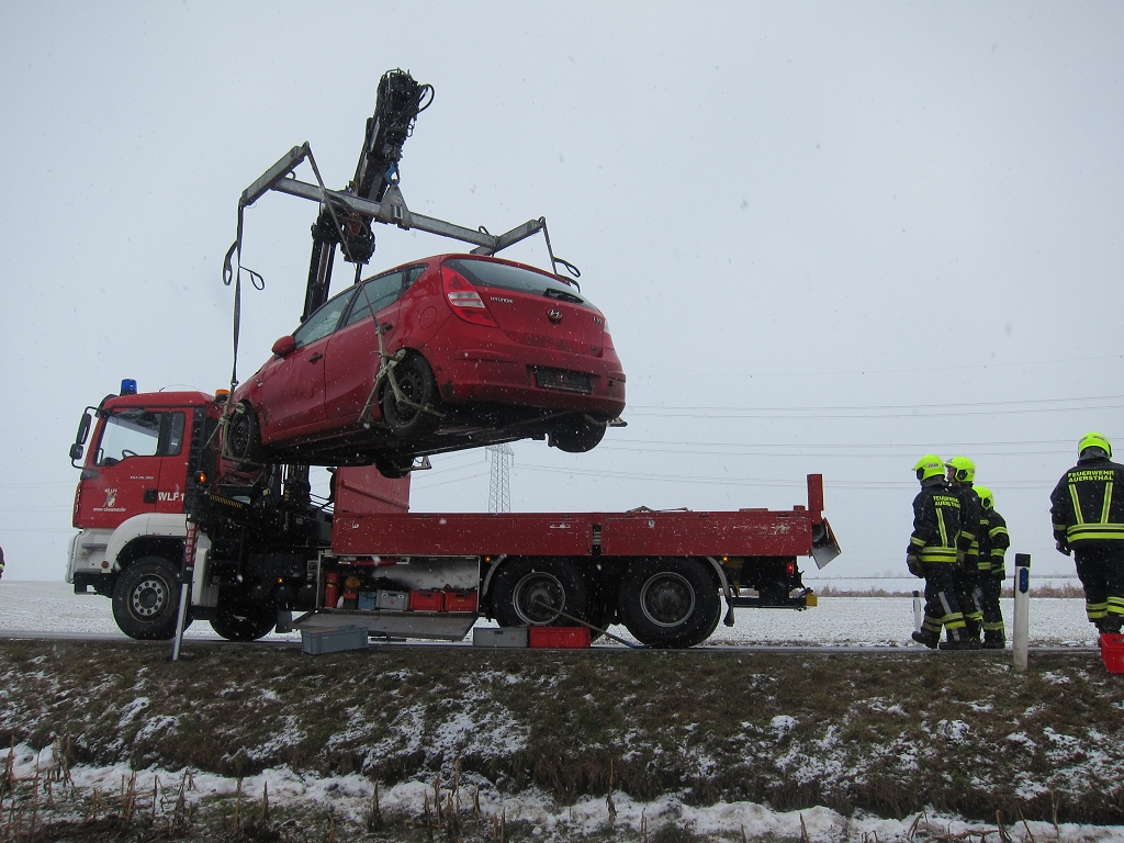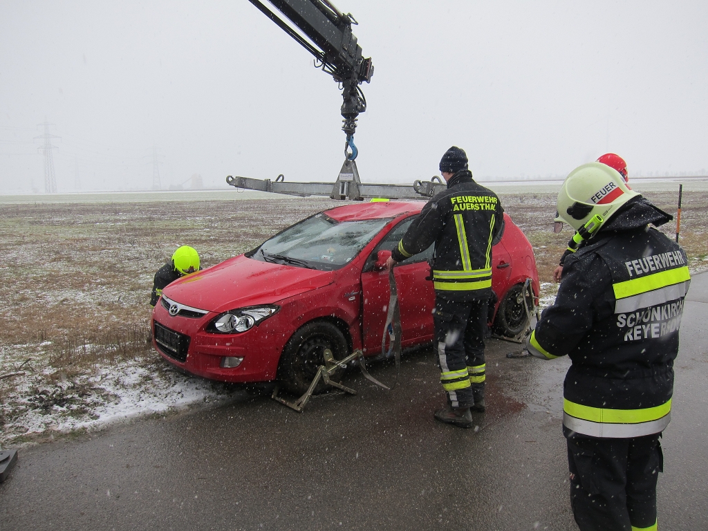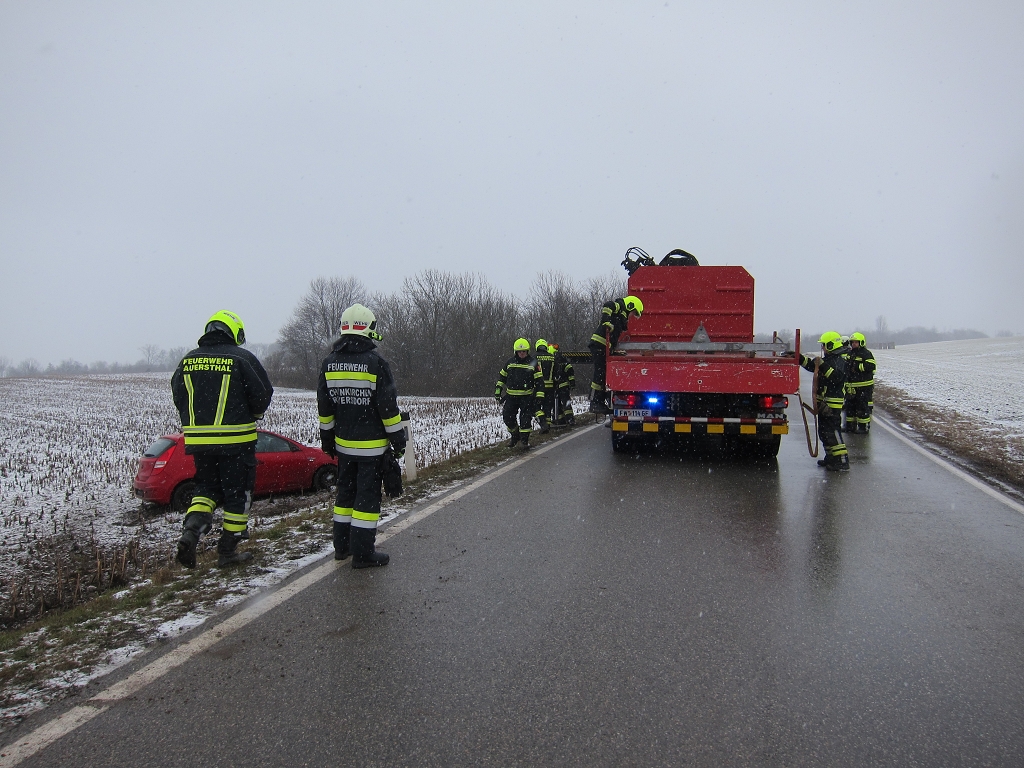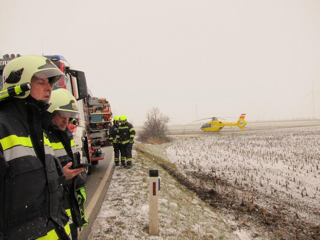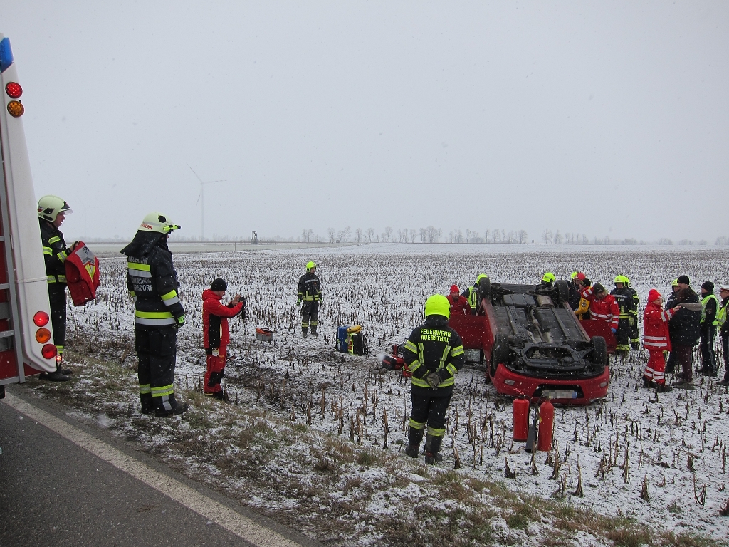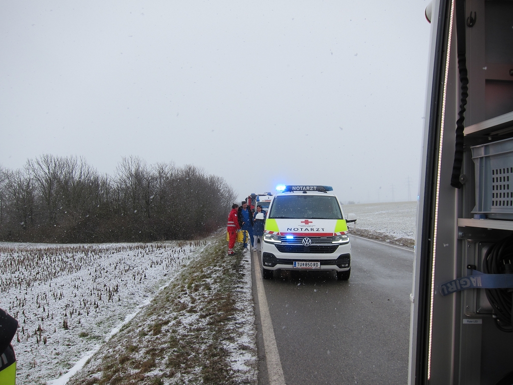 Am Donnerstag, dem 19. Februar 2026, wurde die Freiwillige Feuerwehr Schönkirchen-Reyersdorf um 09:37 Uhr mittels SMS, Pager und Sirene zu einer Menschenrettung nach einem Verkehrsunfall auf die L3158 alarmiert. Beim Eintreffen am Einsatzort bot sich den Einsatzkräften ein dramatisches Bild: Ein PKW lag auf dem Dach, und eine Person war noch im Fahrzeug eingeschlossen. Umgehend wurde die Unfallstelle abgesichert und ein zweifacher Brandschutz aufgebaut. In enger Abstimmung mit dem anwesenden Notarzt gelang es unserer Mannschaft, die Person schonend über die Heckklappe des Fahrzeugs zu retten und dem Rettungsdienst zu übergeben. Nach der erfolgreichen Menschenrettung wurde das Unfallfahrzeug mithilfe des Lastfahrzeugs der Kameraden aus Auersthal geborgen und an einem gesicherten Ort abgestellt.