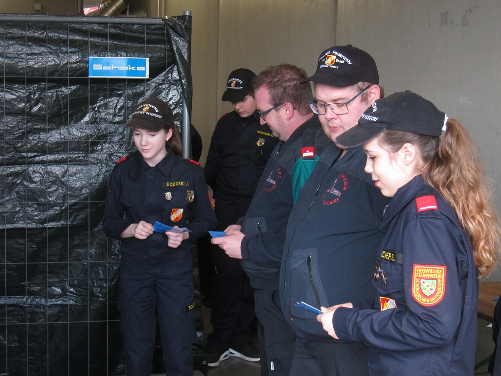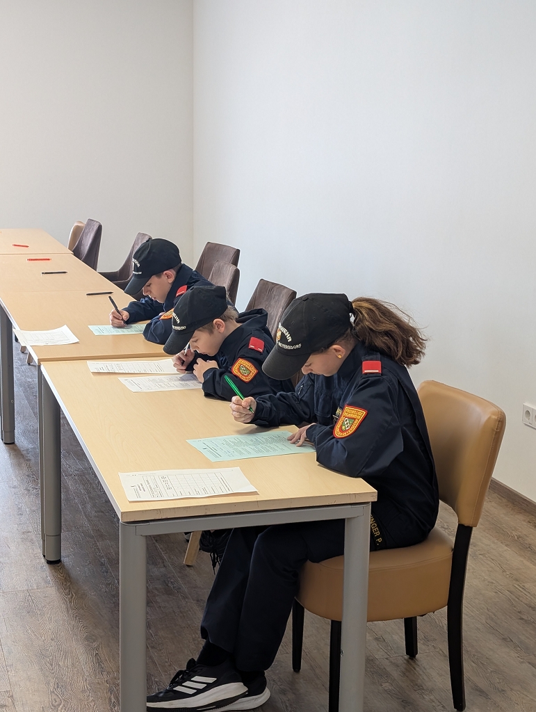 Beim Wissenstestspiel der unter-12-jährigen geht es vor allem um die feuerwehrtechnischen Grundlagen. Ein großer Punkt sind dabei die Sirenensignale und das Absetzen eines Notrufes. Und seien wir ehrlich: Den Zivilschutzprobealarm am ersten Samstag im Oktober kennen die Kids ja alle schon – jetzt wissen sie auch haargenau, wie die Signale heißen und was im Ernstfall zu tun ist.